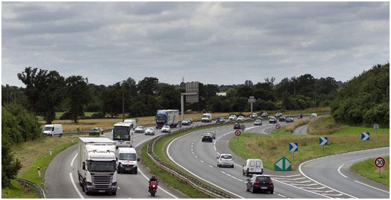 法國高速公路大多數(shù)為瀝青路面、瀝青采用改性瀝青(塑料或橡膠),典型的路面結(jié)構(gòu)類型有:柔性結(jié)構(gòu)、半剛性結(jié)構(gòu)、混合型結(jié)構(gòu)和剛性結(jié)構(gòu)。面層一般采用5厘米至6厘米的瀝青混凝土,骨料采用連續(xù)級(jí)配,有些路段使用排水瀝青面層,以減少雨水對(duì)路面摩擦系數(shù)的影響,排水瀝青面層骨料采用間斷級(jí)配,面層與基層加一層封水連接層,防止雨水滲入基層。